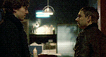 londonlock: witch-lock: to this day I maintain that the reason Sherlock told John he was married to his work is because all of the sudden this hot soldier boy he just met was smiling at him and licking his lips during a candlelight dinner and he gay panicked gay panic // oil painting, 2010
