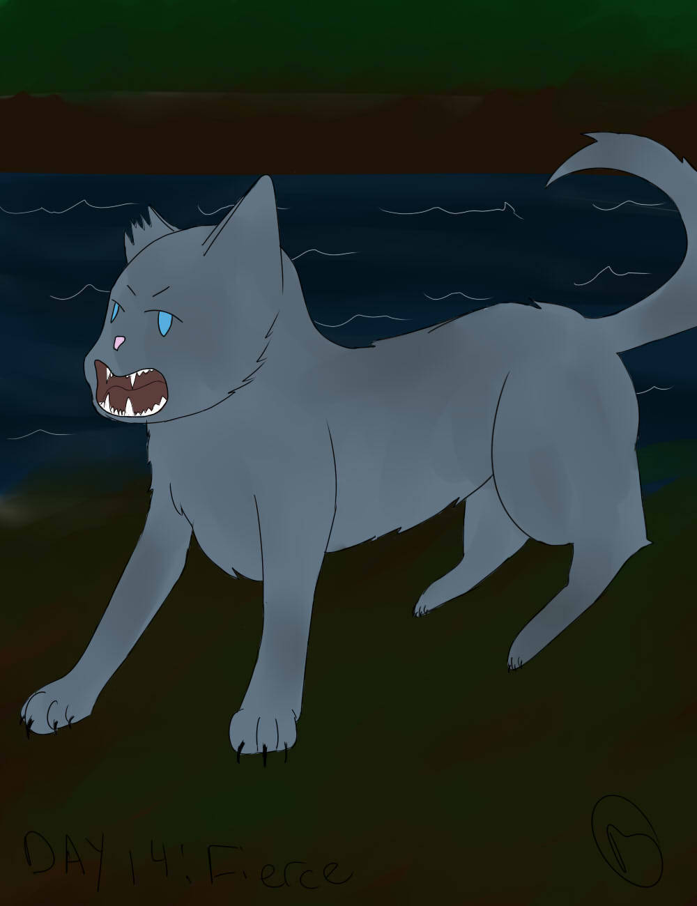 This is one of my favorite drawings. Its Bluestar with the shattered glass centered on her head, as in her mind was shattered after Tigerclaws betrayal.
